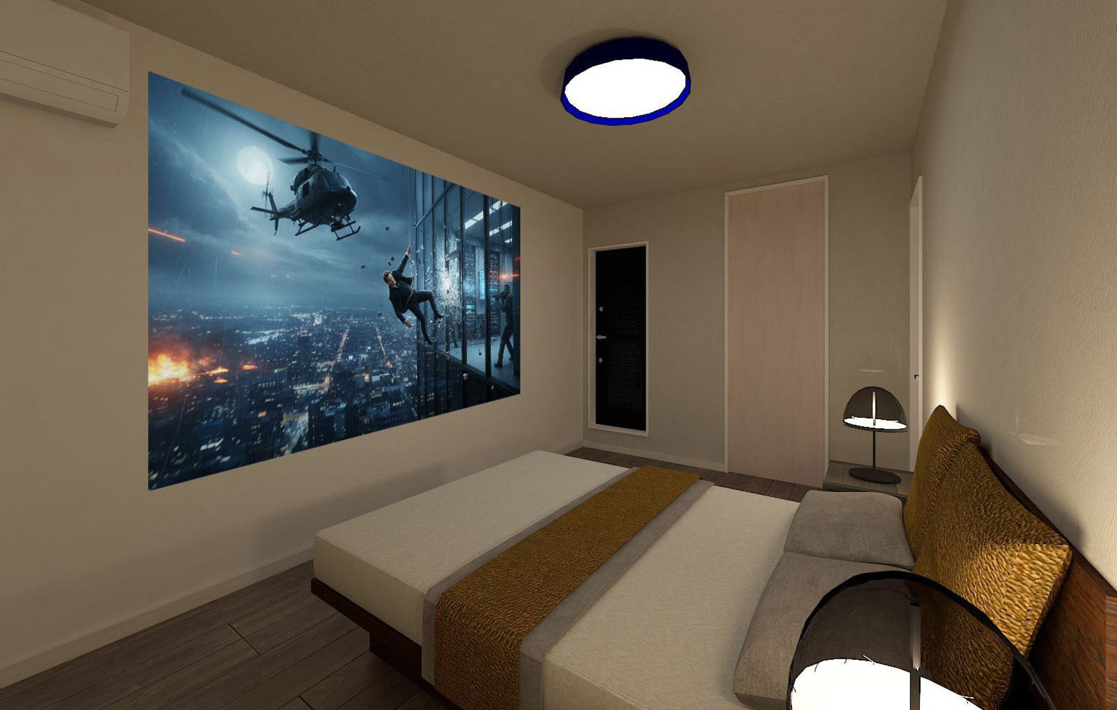 ご夫婦の寝室にはウォークインクローゼットとバルコニーが隣接。ベッドで横になったまま映画が見られるプロジェクターも設置予定です。