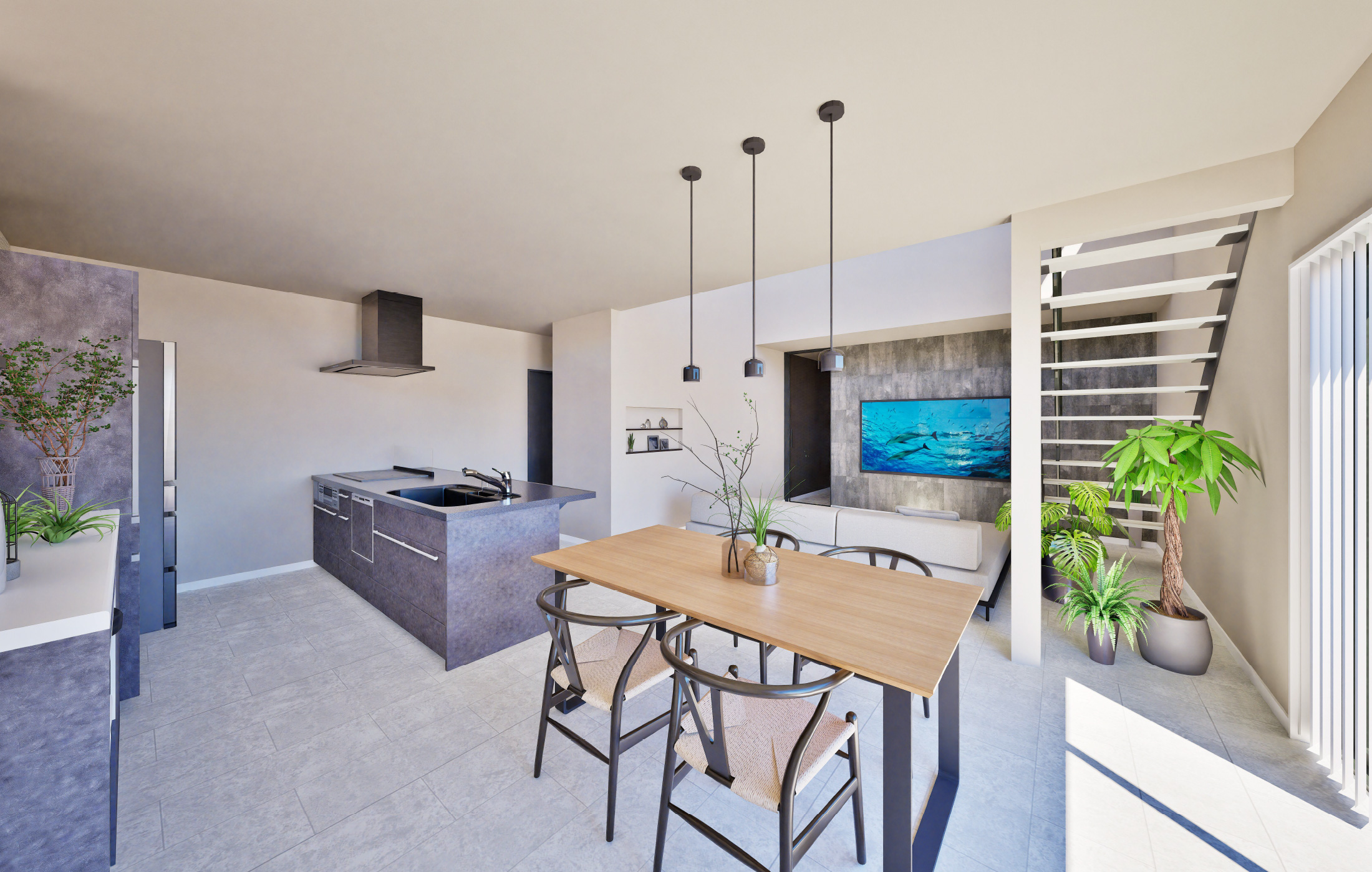 キッチンからはLDK全体が見渡せ、ご家族とコミュニケーションしながらお料理できます。