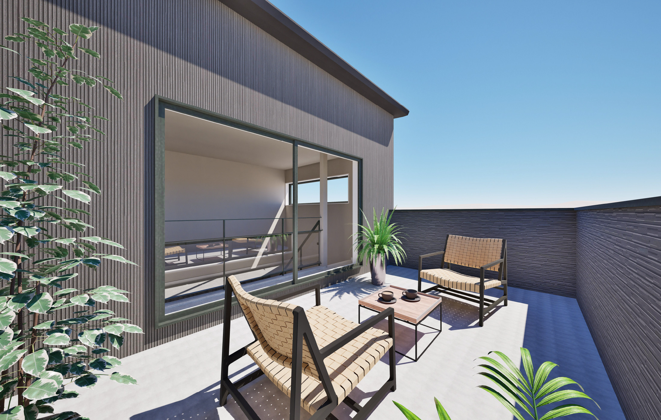 2階かつ壁で囲まれていることから、周囲の目を気にすることなくリラックスしてくつろげるアウトドアリビングとして活用いただけます。