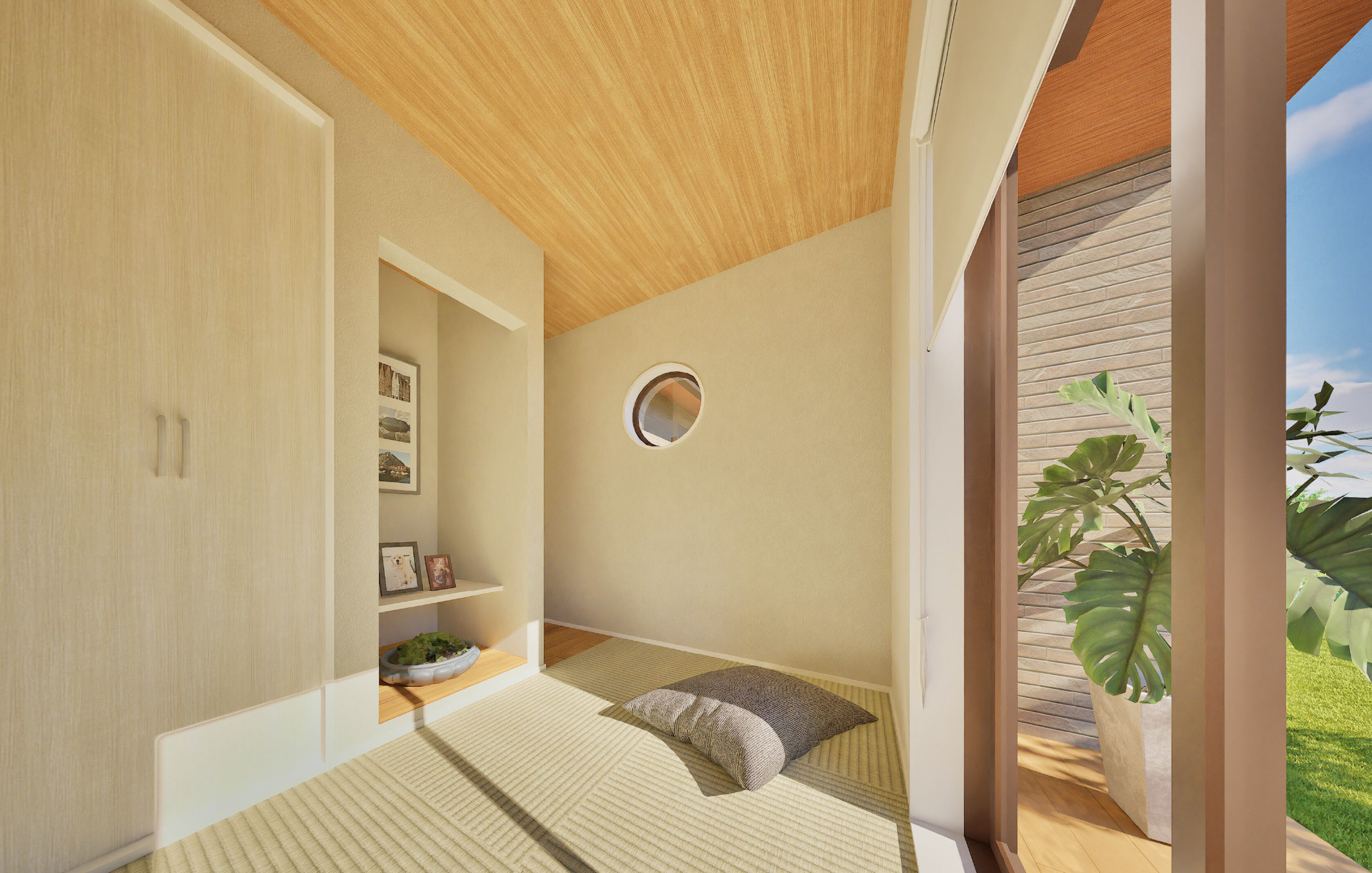 和室は仏間を設けた3帖のコンパクトな落ち着ける空間。丸い小窓が可愛いアクセントです。