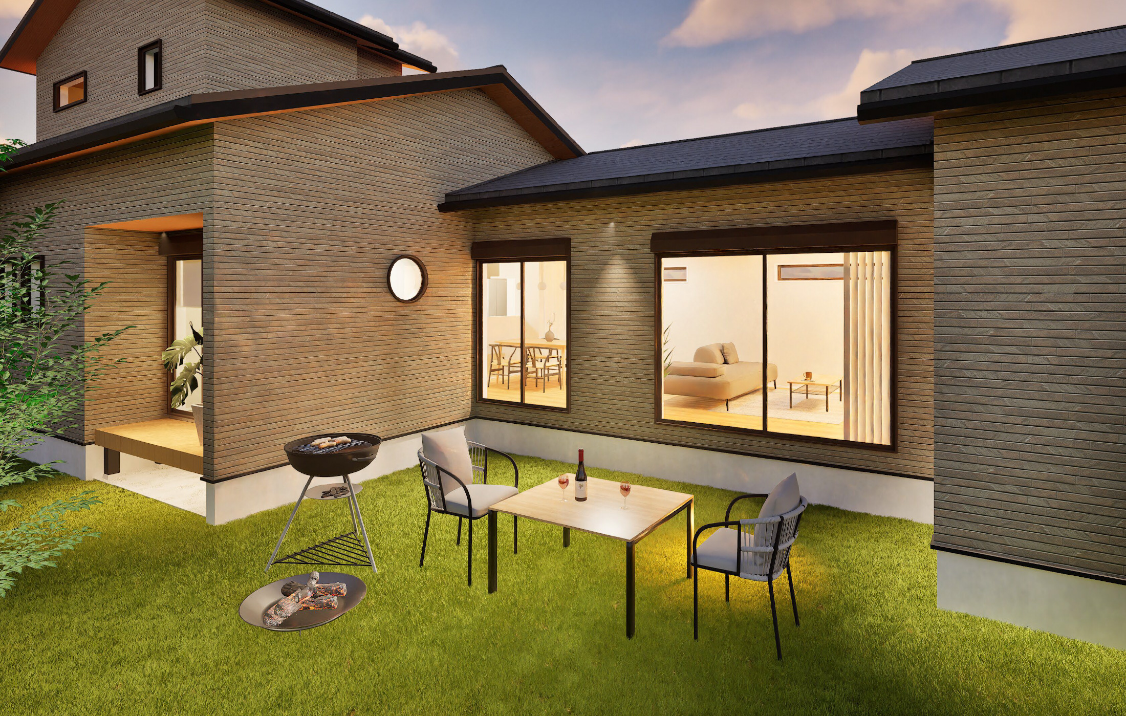そして、ご家族の希望だった広いお庭は、LDKとのつながりを感じるアウトドアリビングに。また、家庭菜園で野菜を育てたり、楽しみが広がります。