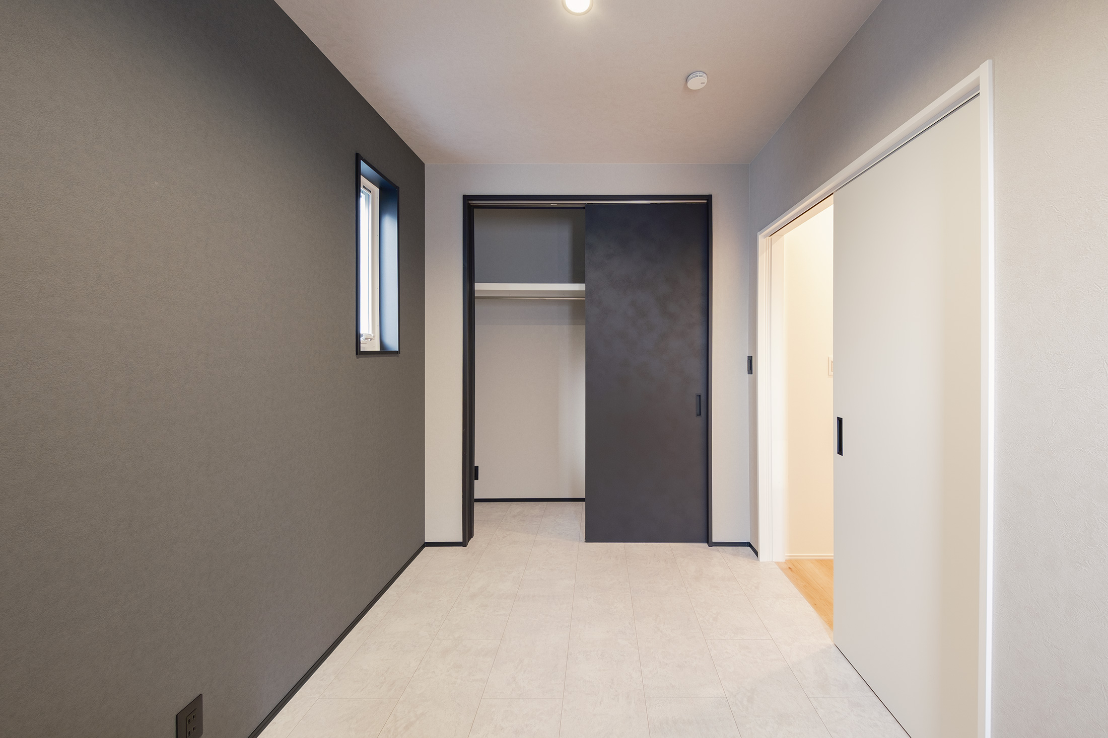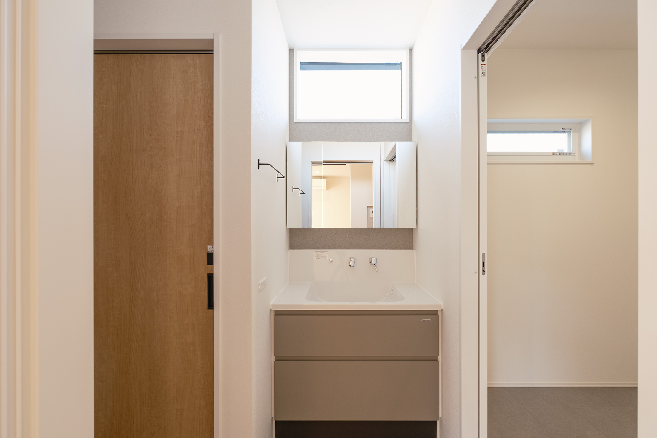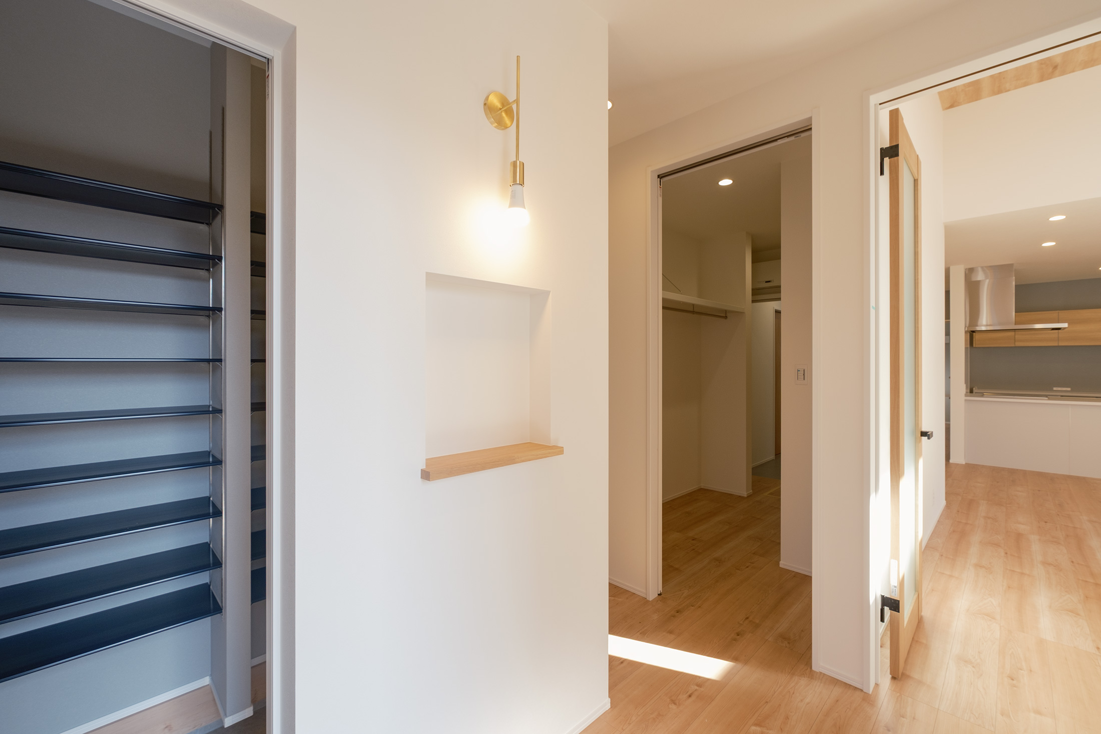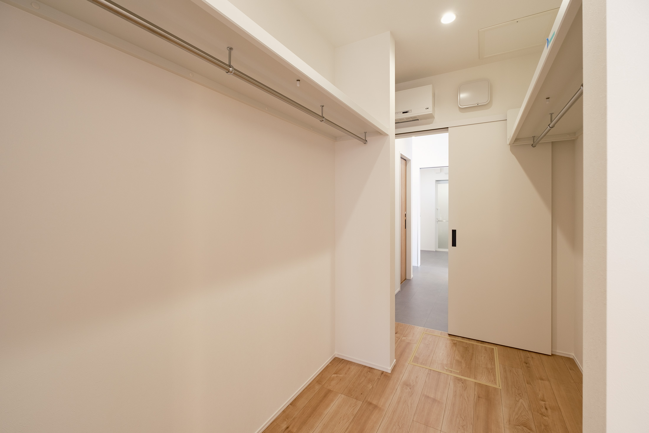 もう一つは、広いシューズクロークからウォークインクローゼットで着替え、洗面所〜ランドリールーム〜浴室へと一直線につながる生活動線です。